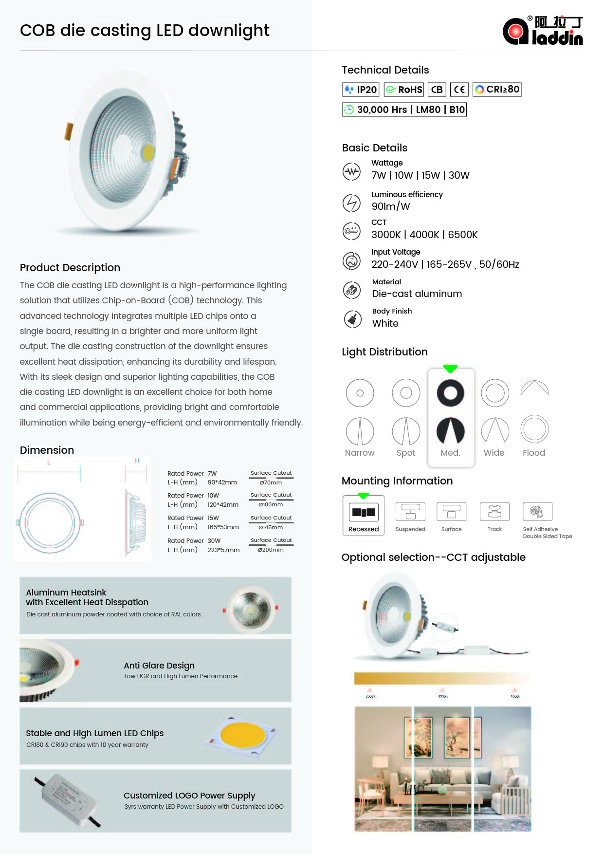 Multi-Head COB LED Downlight